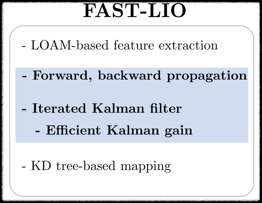 1. Iterated Kalman filter(IKF)를 사용하여 LiDAR와 IMU 센서를 퓨전