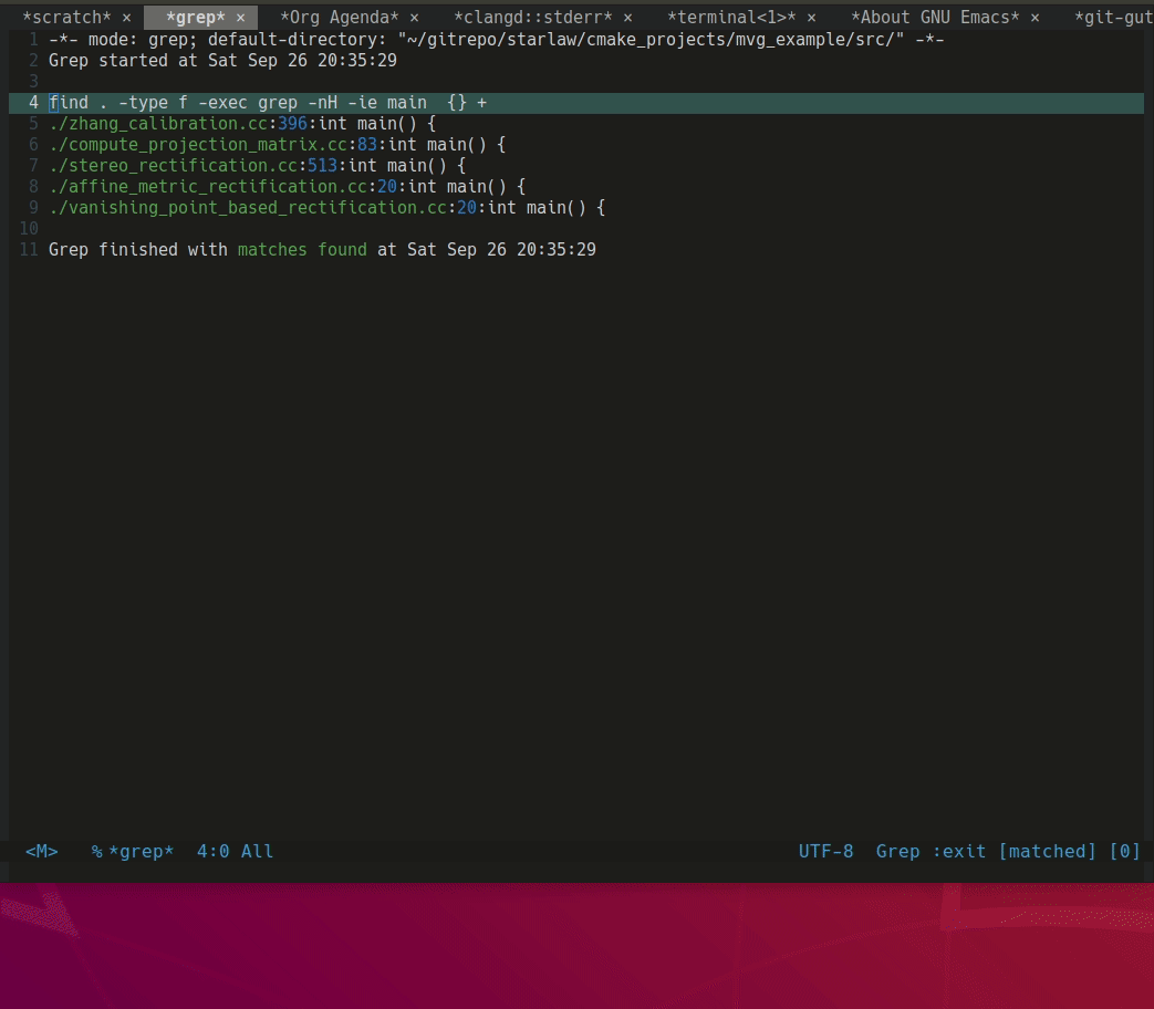 3.1.2.6 <SPC-c-g>: grep-find