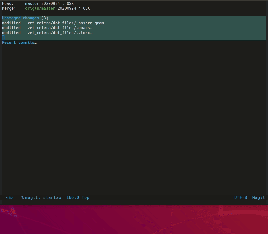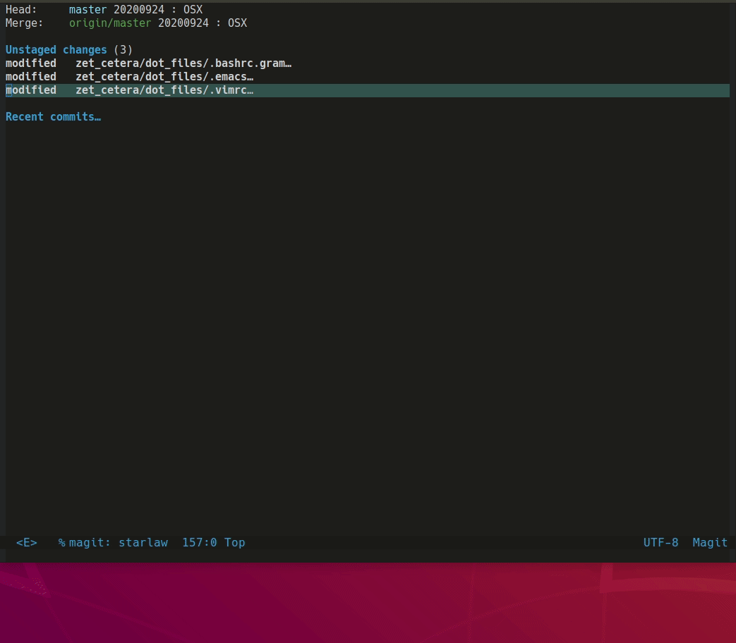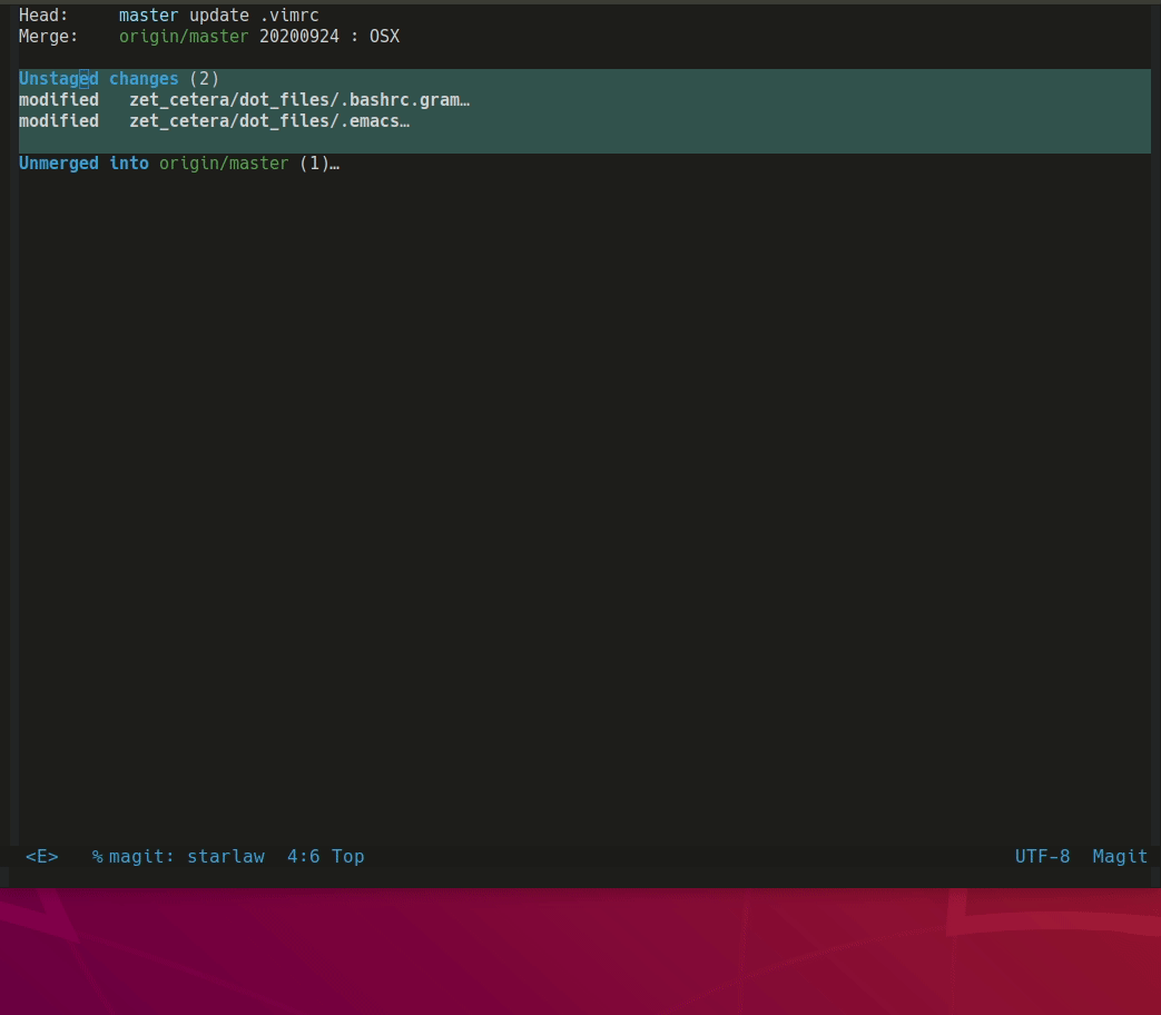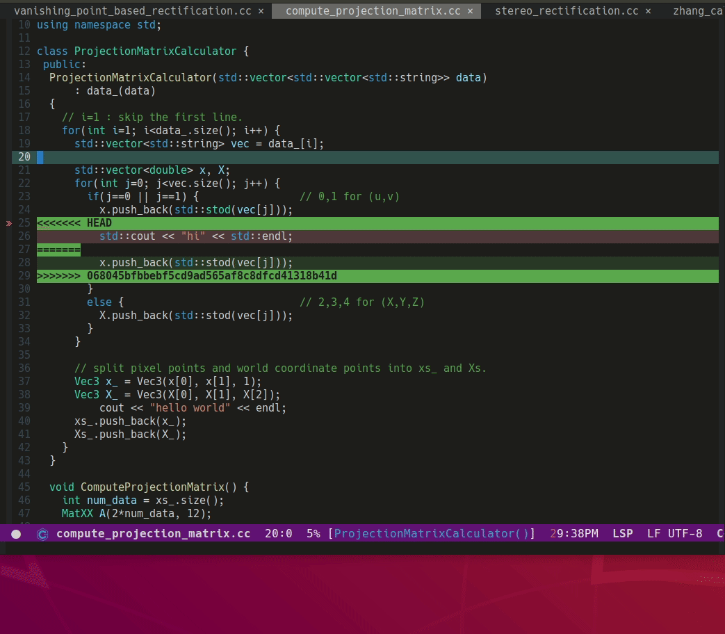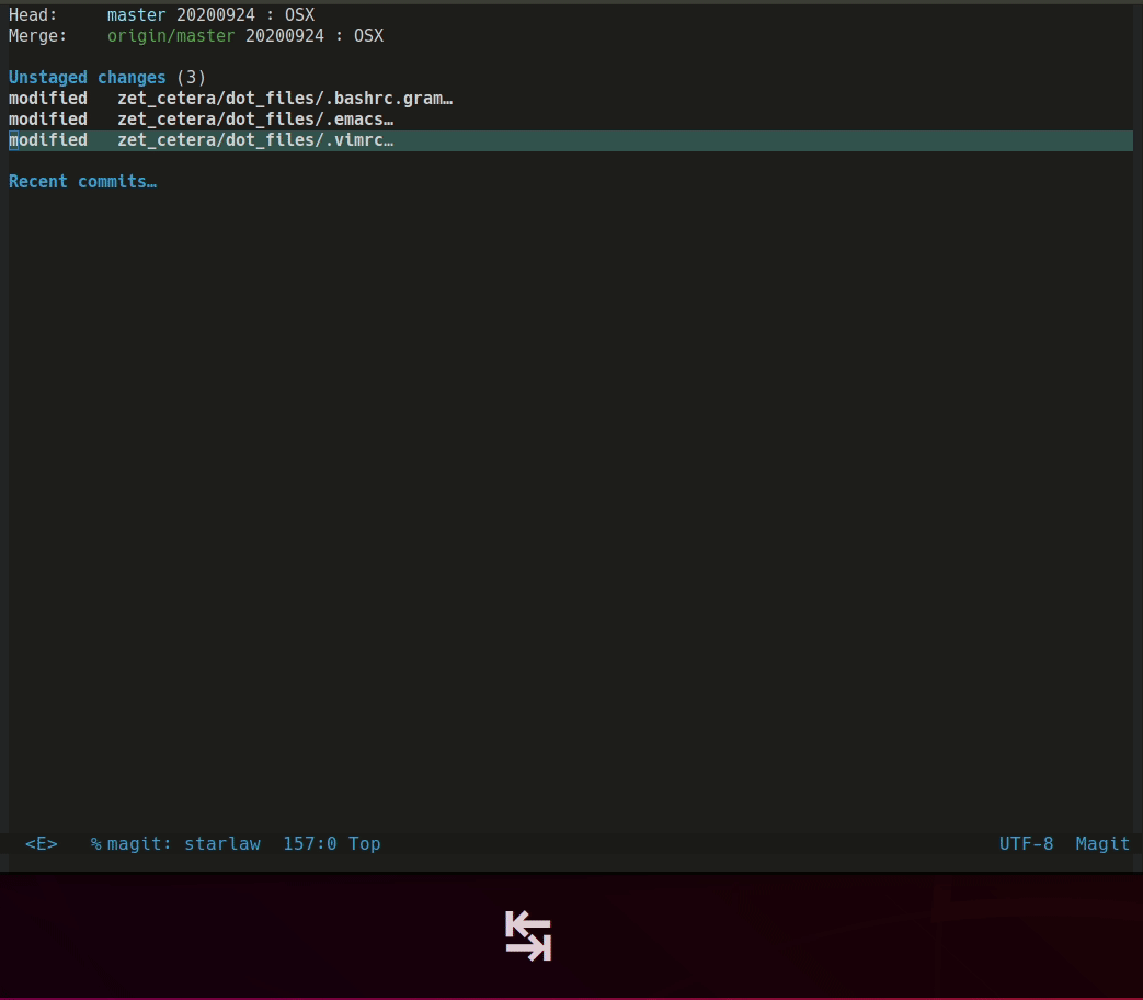 Merge Conflict가 발생한 경우 C-c-n,p 키를 통해 빠르게 네비게이션할 수 있다. C-c-a,b 키를 통해 두 변경 내역 중 하나를 선택한다. C-c a는 위의 변경내역을 선택하고 C-c b는 아래 변경내역을 선택한다.