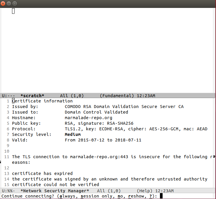 이 때, 아래와 같이 TLS 관련 질문이 나오면 always 를 선택하여 모든 패키지들을 설치한다.