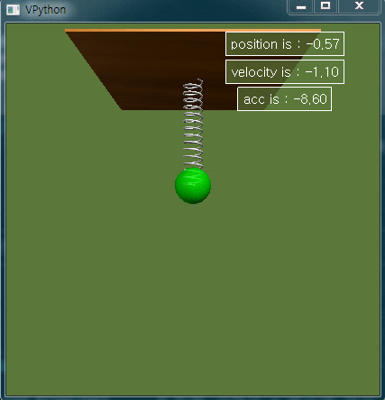 | VPython 예제3 - 1자유도 스프링-질량계 애니메이션(2) (0) | 2022.01.11 |