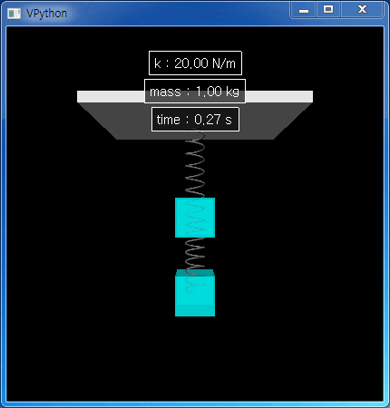 | VPython 예제10 - 2자유도 반한정계 스프링-질량 애니메이션 (0) | 2022.01.11 |