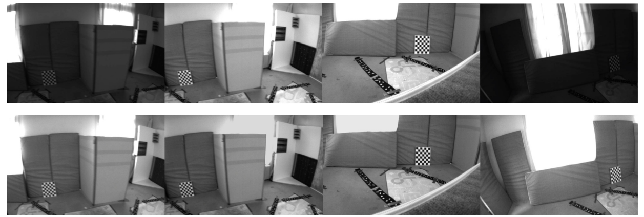 direct method는 밝기오차를 최적화하여 카메라의 포즈를 추정하기 때문에 이미지의 밝기 차이에 민감하다. SLAM에서 주로 사용하는 머신비전 카메라는 일반적으로 이미지의 밝기 변화에 따라 노출시간을 자동으로 조절하므로(auto exposure) 노출시간에 따른 밝기 변화가 심한 경우 direct method는 정상적으로 작동하지 않을 수 있다. 아래는 [13] 논문의 예시이다.