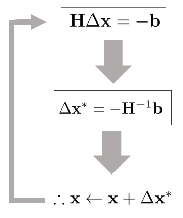 $$\mathbf{x} \leftarrow \mathbf{x} + \Delta \mathbf{x}$$