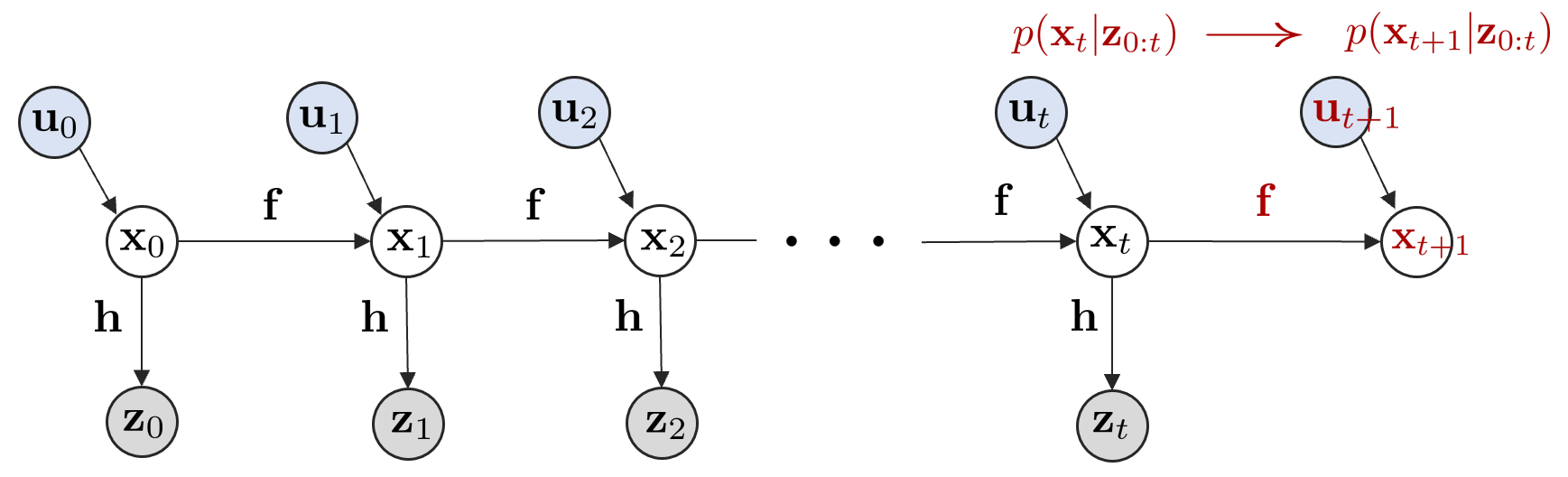- $\mathbf{z}_{1:t} = \{\mathbf{z}_{1}, \cdots, \mathbf{z}_{t} \}$ : 1~t 시간에서 관측값