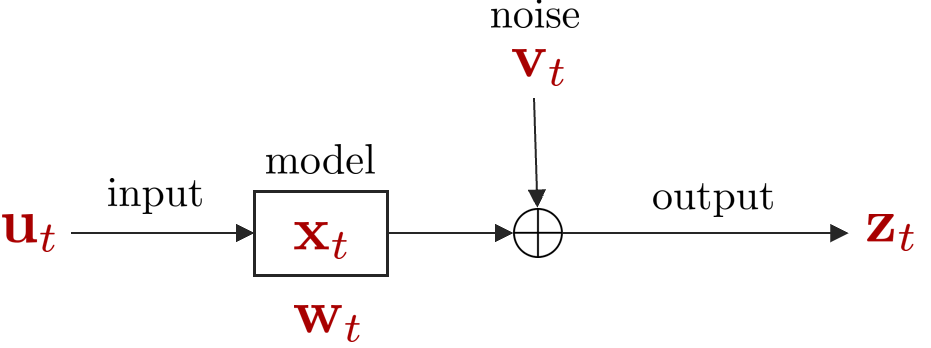- $\mathbf{v}_{t}$: $t$ 시점에서 관측 모델의 노이즈