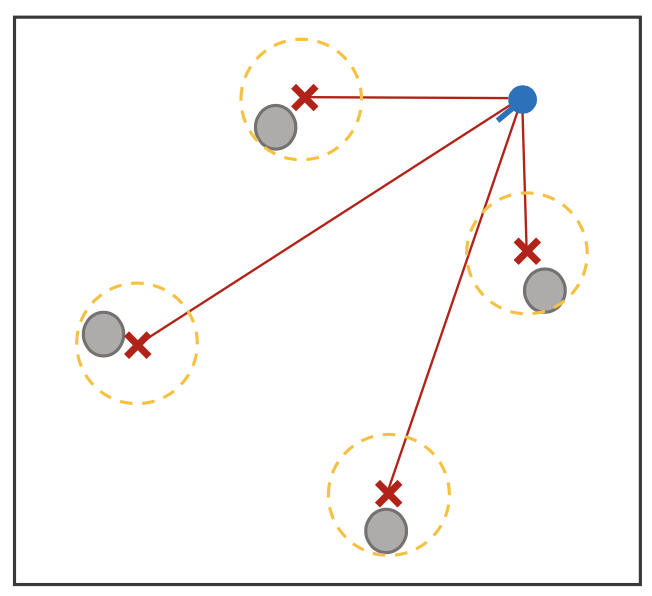 만약 위와 같이 파티클들이 분포하고 있는 경우 헤딩 각도를 표시할 때 어떤 파티클은 $\epsilon + \pi$이고 어떤 파티클은 $\epsilon - \pi$가 되어 합을 취하면 0이 되는 현상이 발생한다. 따라서 헤딩 각도의 경우 벡터를 사용하여 해당 문제를 해결한다.