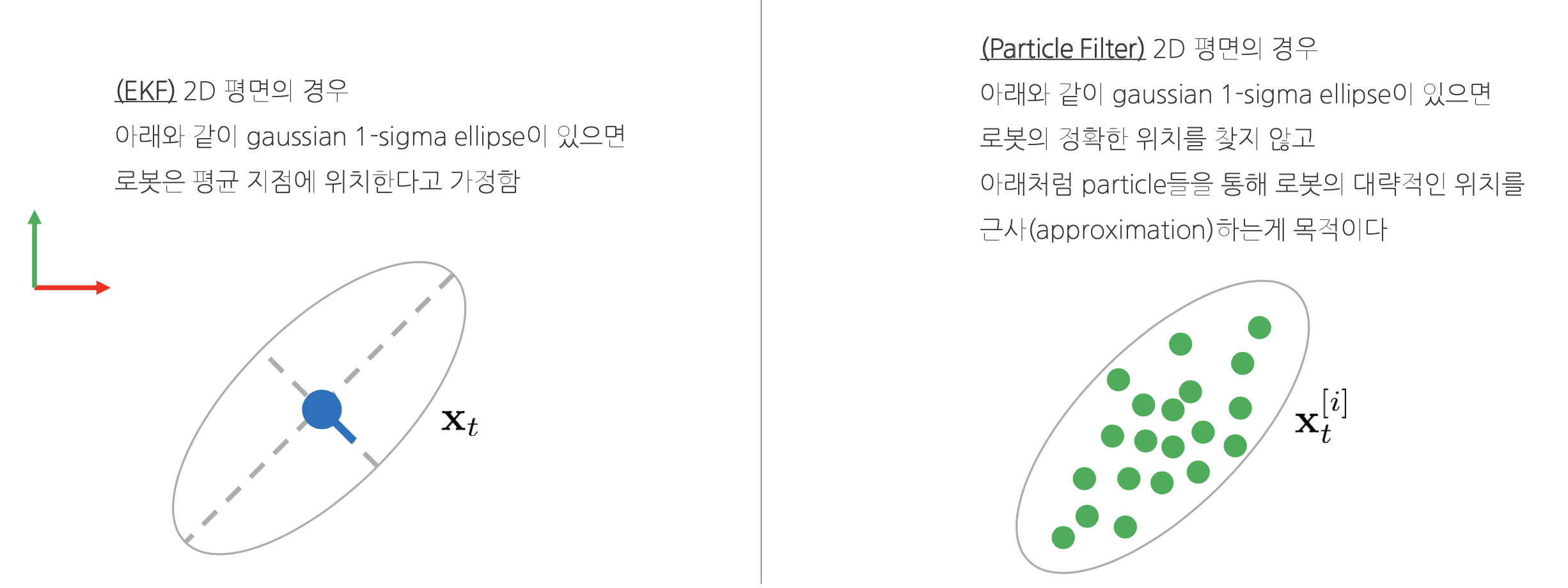 - 실제 로봇의 정확한 위치를 찾는 것이 아닌 대략적인 위치를 근사하는(approximate) 방법 중 하나이다