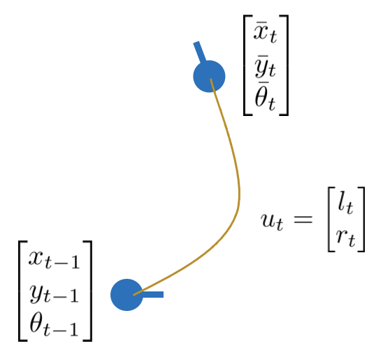 제어 입력(control input)을 받은 로봇의 predicted state는 다음과 같이 수식으로 표현할 수 있다.
