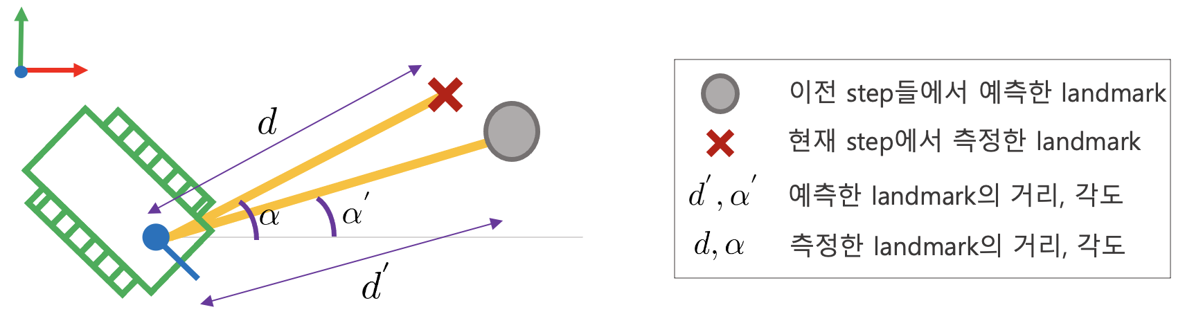 따라서 로봇의 초기 위치를 랜덤하게 여러 위치에 산개시켜 놓은 다음 가장 Landmark correspondence가 가장 높은 지점의 위치를 초기 포즈로 설정하는 방법이 효율적이다.