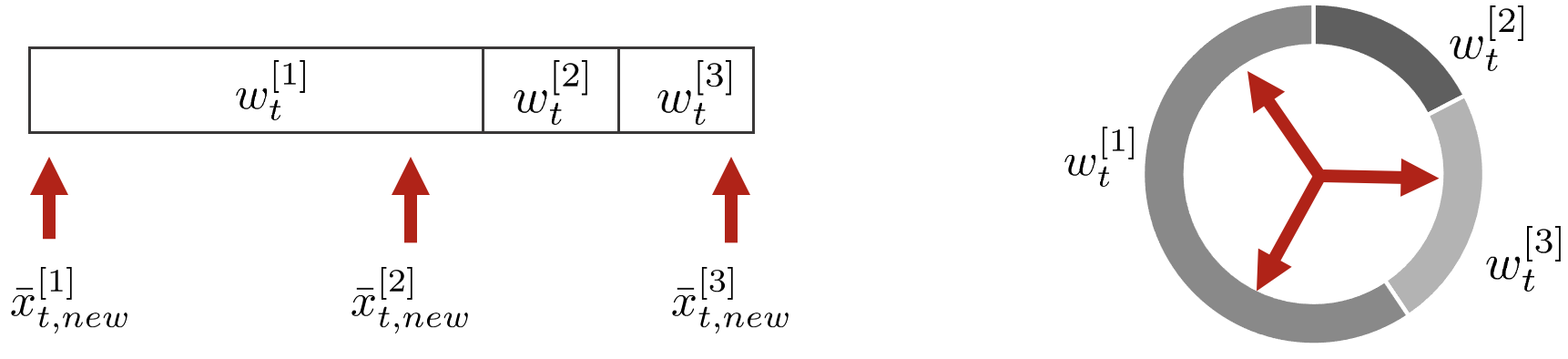 \begin{equation} \begin{aligned} \bar{\mathbf{x}}_{t}^{[m]} = g(\mathbf{x}_{t-1}^{[m]},\begin{bmatrix} l'_{t} \\ r'_{t} \end{bmatrix} ) \end{aligned} \end{equation}
