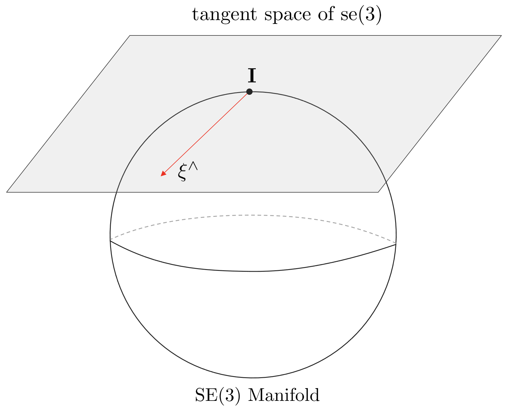 In the case of SE(3) Lie Group, which will be described later, a 6-dimensional element must satisfy certain constraints. That is, the elements of the SE(3) Lie Group must exist on the 6-dimensional manifold. Since this cannot be explained on a plane, it is explained using a three-dimensional sphere.