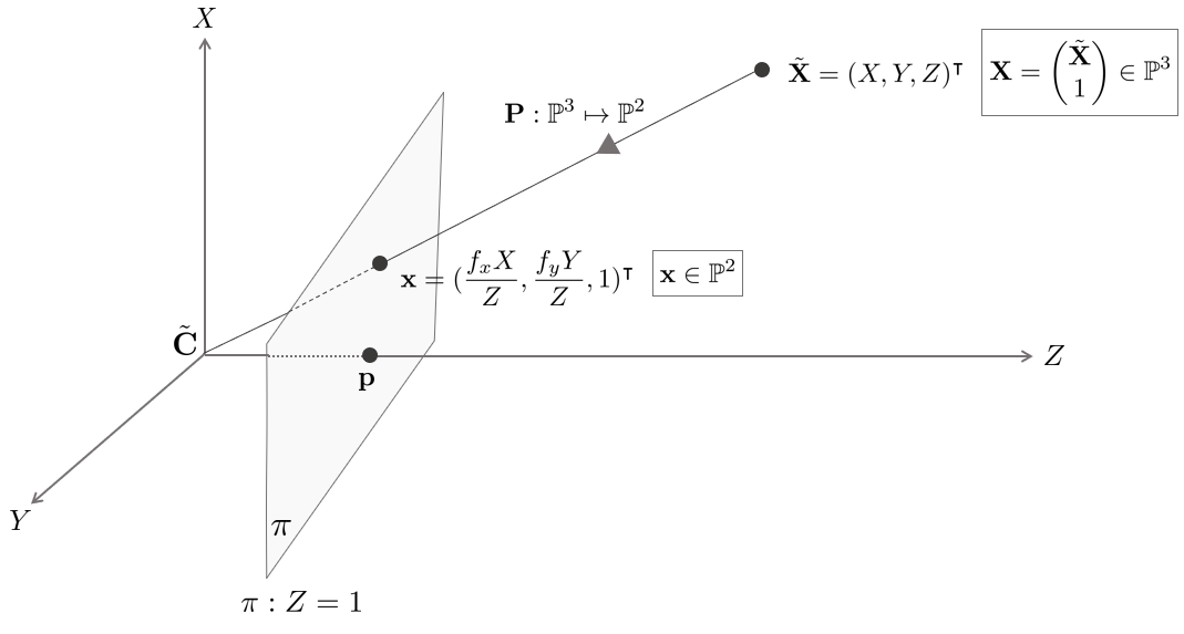 & \mathbf{X} = [X, Y, Z] \in \mathbb{P}^{2}