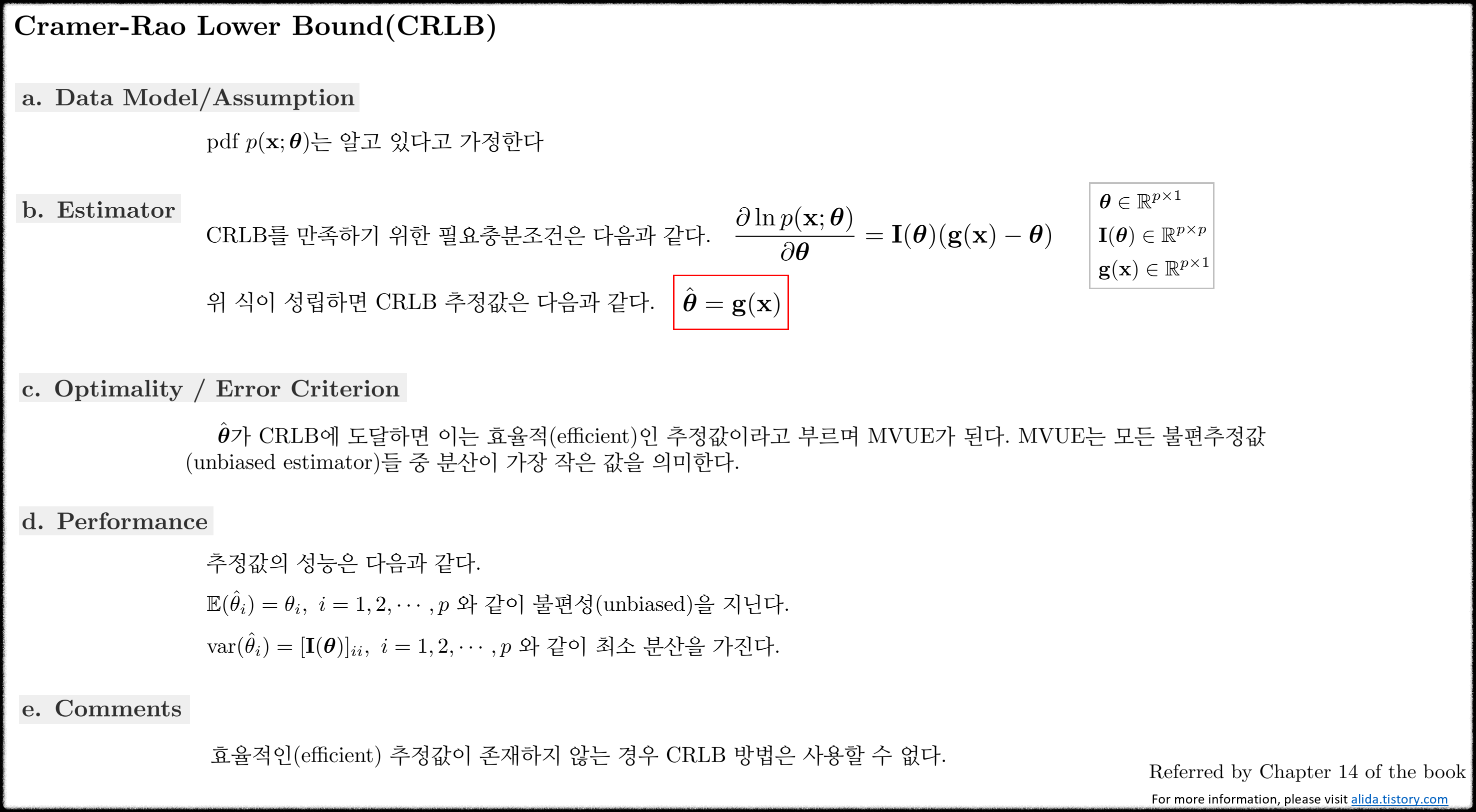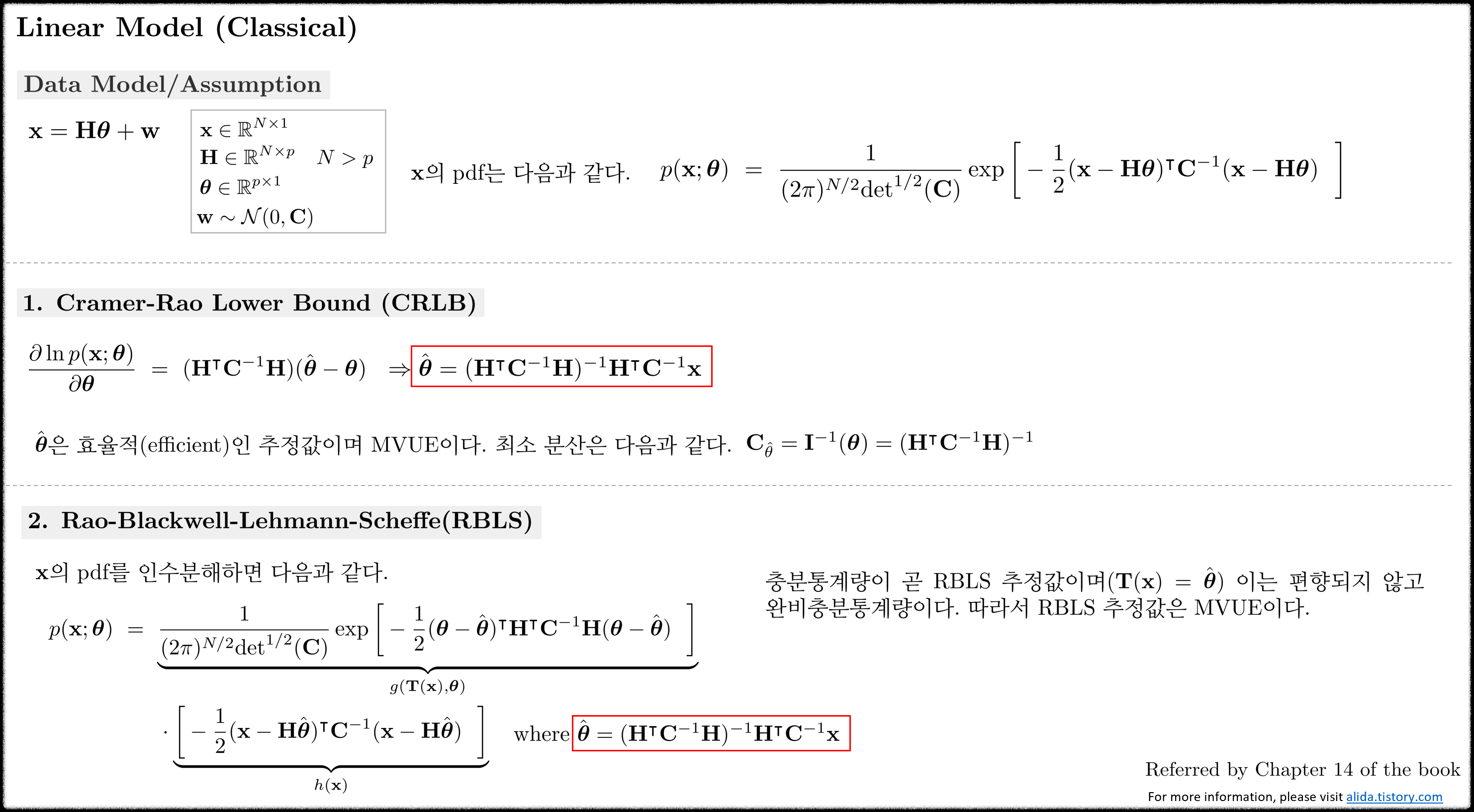 - 만약 우리가 $\theta$에 대한 사전(prior) 정보를 알고 있다면 이는 더 나은 추정에 활용될 수 있다. 하지만 이를 위해서는 $\theta$에 대한 prior pdf가 미리 주어져 있거나 계산할 수 있어야 한다.