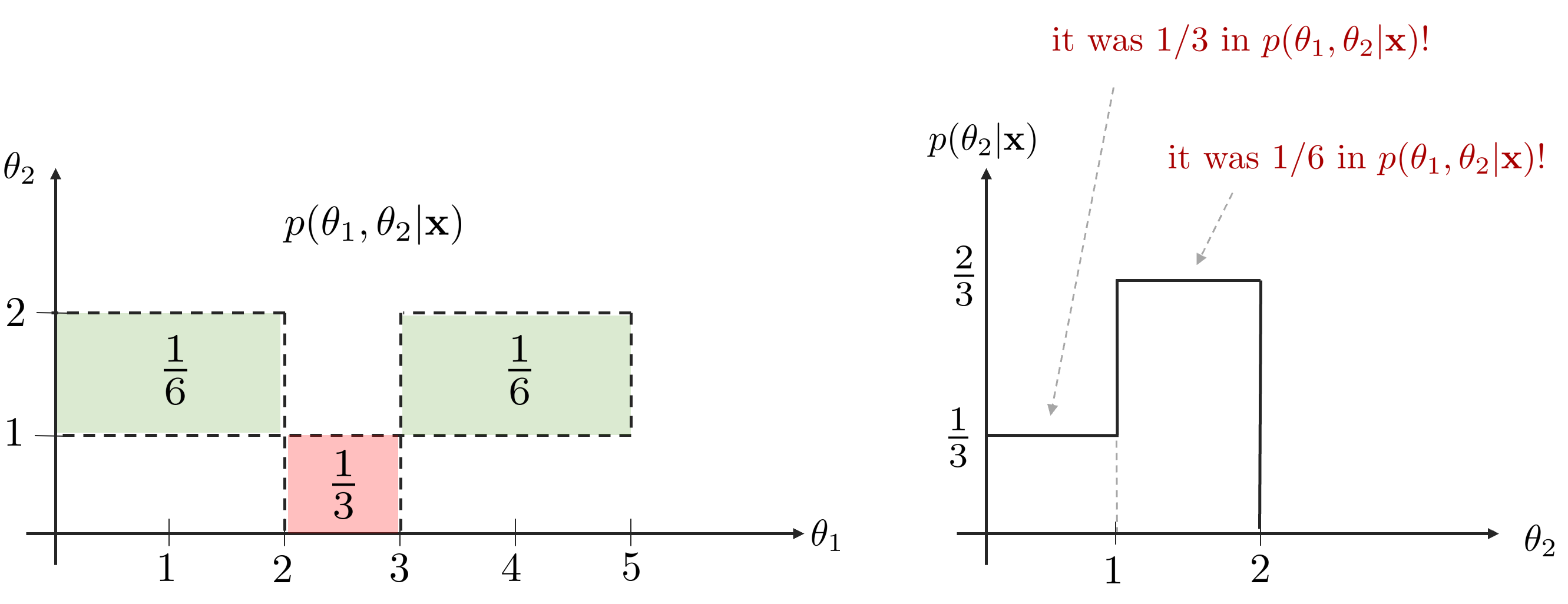 joint pdf는 $p(\mathbf{x}, A)=p(A|\mathbf{x})p(\mathbf{x})$와 같이 분리할 수 있으므로 위 식을 다시 쓰면 다음과 같다.